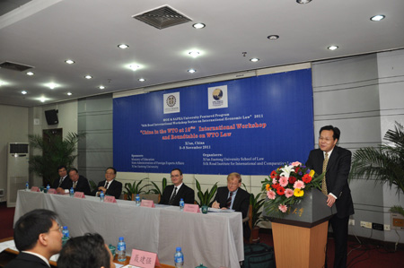作为教育部2011学校特色外专项目之一,首届“丝绸之路国际经济法高级国际研讨班系列——中国入世十年WTO法国际研讨班与圆桌讨论会”于11月4日上午在西安交大科学馆207隆重开幕。我国原驻英国大使马振岗、商务部条法司原司长张玉卿、世界贸易组织规则司司长Johann Human、瑞士伯尔尼大学世界贸易研究所所长Thomas Cottier、西安交大副校长卢天健、陕西省法学会研究部主任魏清利等出席开幕式。英亚(中国)院长兼丝绸之路国际法与比较法研究所所长单文华教授主持开幕式。