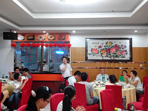 2013年6月22日晚,英亚(中国)举办2013届毕业生欢送晚宴,师生济济一堂,共话离别,互送祝福。彭沪生书记、单文华院长、冯宪芬教授、张弘副教授代表学院老师出席宴会,为同学们饯行。晚宴由英亚(中国)研会前任主席张泽浩同学主持。
