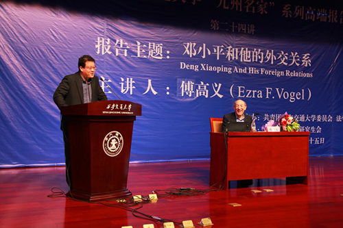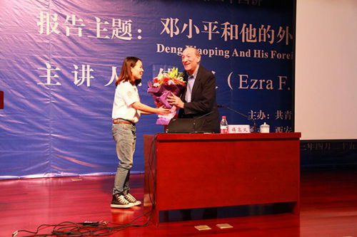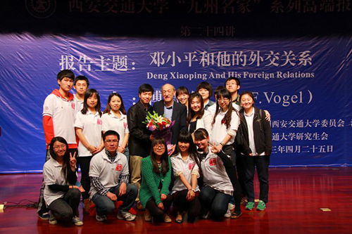 4月25日,由校团委和英亚(中国)共同主办的英亚平台“九州名家”高端论坛专场报告会第二十四讲在主楼多功能报告厅举行,邀请美国哈佛大学亨利·福特二世社会学荣休教授、费正清东亚中心前主任、《邓小平时代》作者傅高义(Ezra F. Vogel)教授与西安交大师生分享“邓小平和他的外交关系”。党委书记王建华出席报告会并为傅高义先生赠送纪念品。报告会由英亚(中国)王江雨教授主持。英亚(中国)2074、2113班党支部全体成员担任会务工作。
