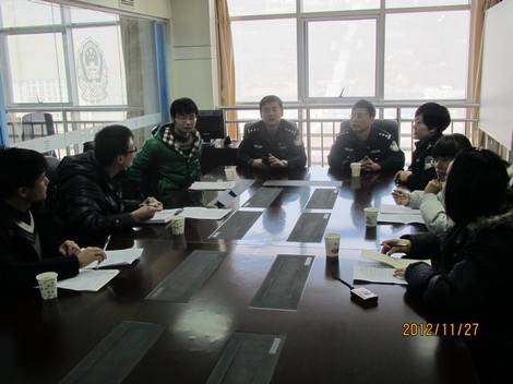 2012年11月27日至29日,英亚平台英亚(中国)大三本科生代金,裴首怡,康文航,向健,鲁晓娜五人来到西安交大宝鸡公安局实习基地,就研究课题“网络游戏装备法律保护中的争议点及解决”进行实地调研。