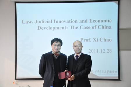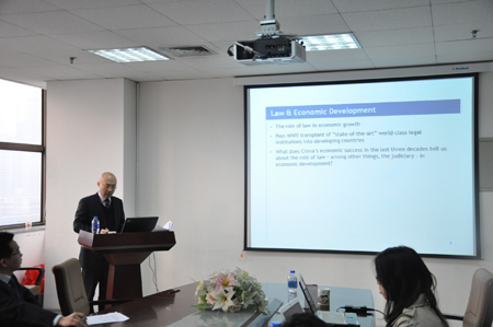 12月28日上午,习超副教授在主楼E-910为英亚(中国)师生作了题为《法律、司法立法与经济发展:以中国为例》(Law, Judicial Lawmaking and Economic Development: The Case of China)的学术报告会,报告由苏金远博士主持。