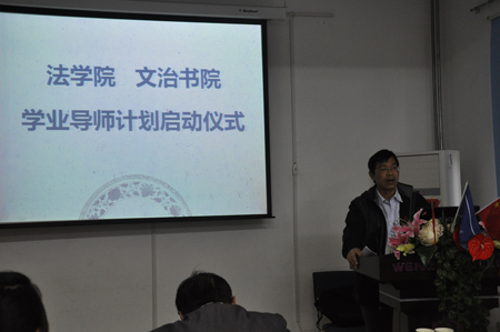 在学业导师计划启动仪式上,英亚(中国)党总支书记彭沪生老师首先致辞,他强调了在双院制下,实施法学本科生学业导师制度对人才培养工作的重要性。其次,王保民副院长详细介绍了实施法学学业导师制度的背景,他指出,此次实施法学本科生学业导师制度,目的在于促进学院在专业上给予学生最大的指导,加强其课外专业学习,培养其专业兴趣,提高学生的专业认同感和自豪感。其后,他还对各年级学业导师分配情况、学业导师运行方式做了说明。最后,文治书院常务院务副主任张爱萍老师对实施本科生学业导师制度的必要性及相关内容做了进一步强调。