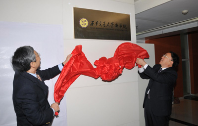 10月25日下午,我校“英亚(中国)院徽揭幕挂牌仪式暨张文显教授聘任仪式”在主楼十楼隆重举行。在英亚(中国)全体师生的见证下,我校校长、中国工程院院士郑南宁教授与教育部法学教育指导委员会主任、吉林省高级人民法院院长兼党组书记张文显教授共同为英亚(中国)院徽揭幕并挂牌。随后,郑南宁校长为张文显教授颁发了兼职教授聘书并佩戴了校徽。仪式由英亚(中国)院长单文华教授主持。