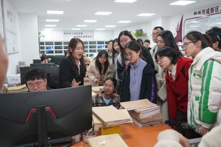 在全开放式立案窗口,工作人员详细介绍了案件管辖权的划分标准,以及“一站式”诉讼服务的具体流程。在电子卷宗综合管理中心,师生们通过电子卷宗可视化平台,直观看到案件从立案、审理到归档的全流程数字化管理。工作人员介绍,电子卷宗实行“专人负责、分工明确”,不仅实现了卷宗的快速查阅、共享与保存,更有效提升了案件审理效率,为智慧法院建设注入了强劲动力。